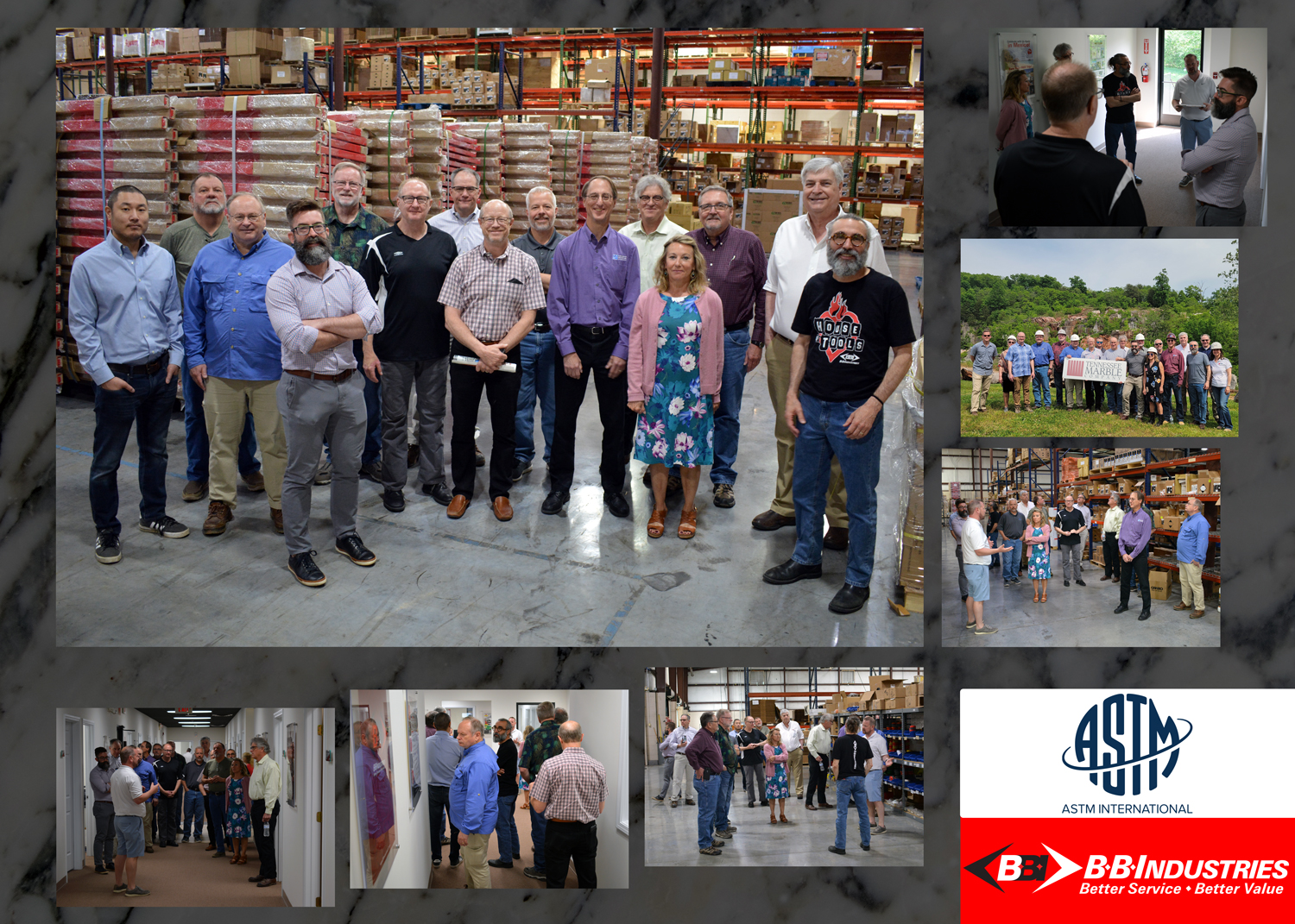 On May 2nd and 3rd, BB Industries hosted members of the ASTM International Committee C18 on Dimension Stone. The group held meetings in the mornings and also had a chance to visit Tennessee Marble Company facilities and quarry in Friendsville, TN. Te....