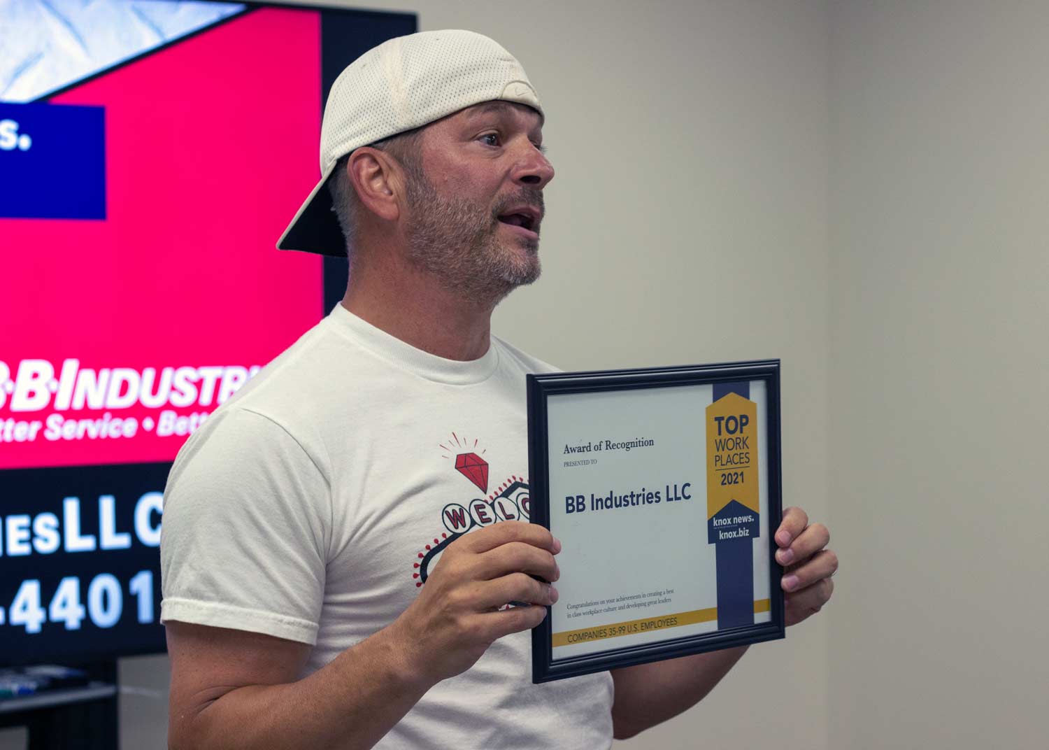 Knoxville News Sentinel Awards BB Industries Knoxville’s Top Workplaces 2021 Honor