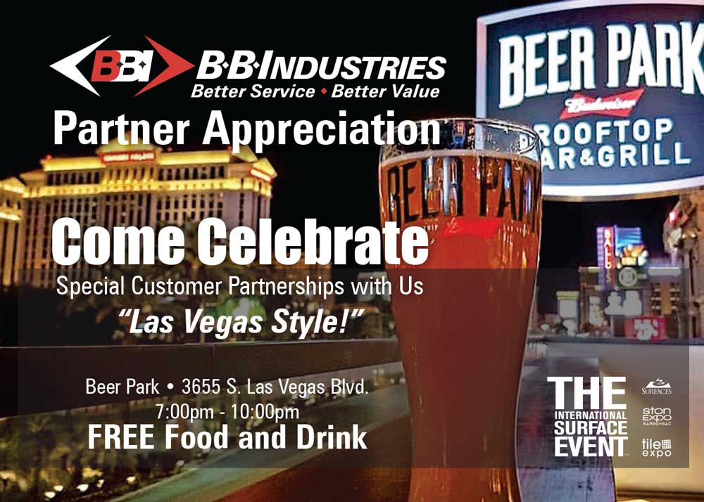 BB Industries will be out in force at this year's The International Surface Event (TISE) 2021 in Las Vegas, NV. If you're in town, come on by our booth# 5347 and let's talk face to face.