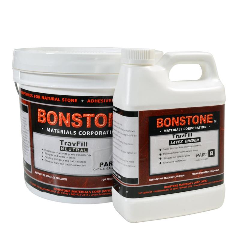 Bonstone TravFill Kit, Travertine Color, 7 Lbs. is a two-component, lime-based, latex modified filler material for travertine floors.