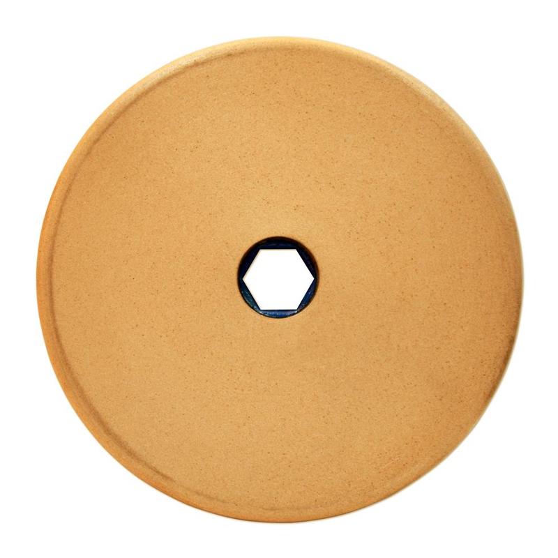 GlossFire Chamfer Copper Polishing Disc, 6" is used as the last step in a vertical in-line machine to “break” the edge. For most granite or quartz, this will require no further polishing.