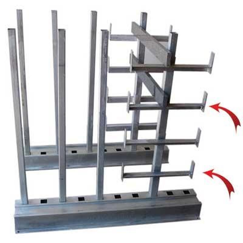 - Outside rails have 2" square holes spaced 4" apart on the top. A steel plate with identical holes is welded and boxed inside the rails, 1" up from the bottom