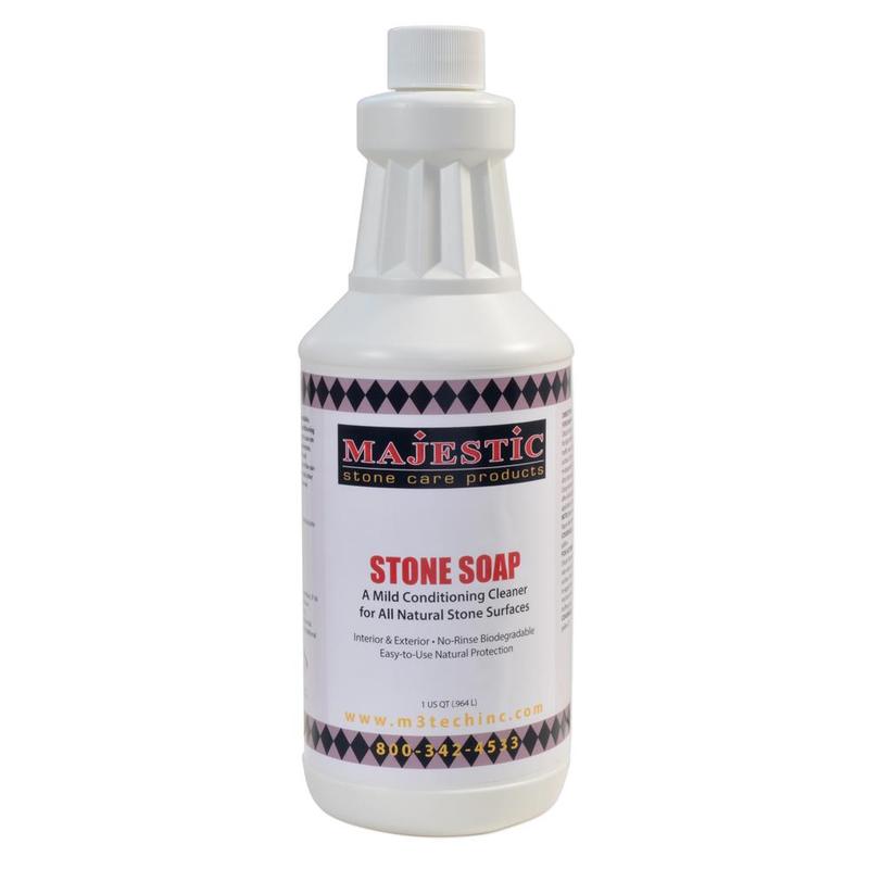 Majestic Stone Soap, 1 qt (MAJC04001) is an all natural, biodegradable, highly concentrated cleaner/conditioner designed for daily cleaning and conditioning of all natural stone surfaces.