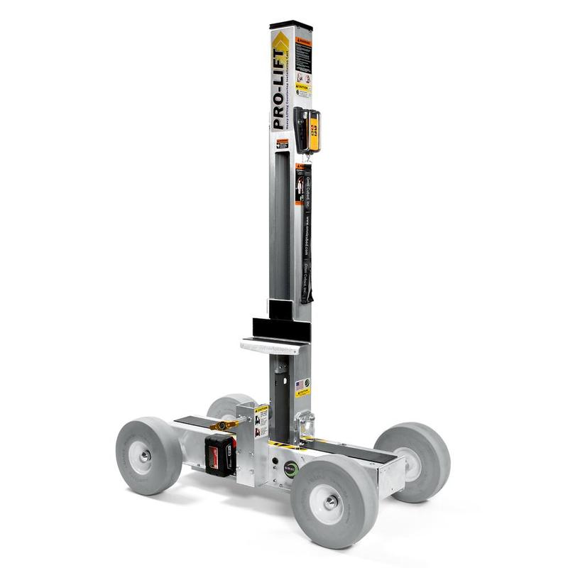 The Pro-Lift is powered by a long-lasting rechargeable tool battery, controlled via wireless remote, and has an integrated level, stone clamp, and kickbrake for added safety. The cart also features 10" shock-absorbing, non-marking, flat-free tires. Every aspect of this cart has been designed with safety, ease, and convenience in mind, to provide immeasurable benefit to small and large fabrication shops.