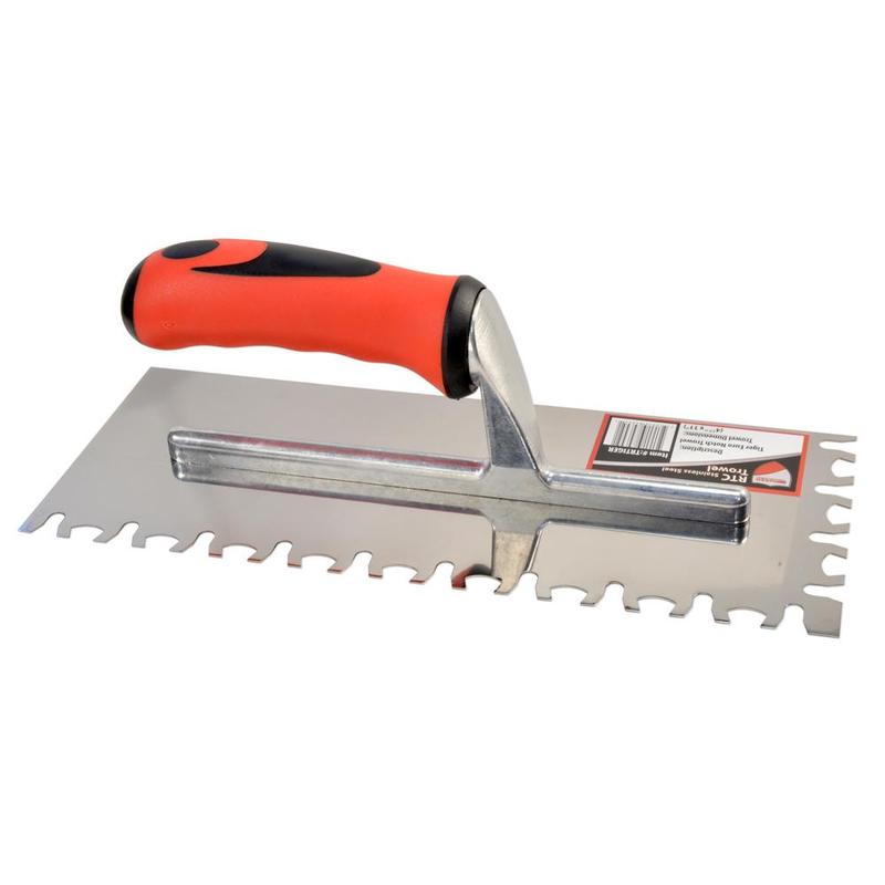 The RTC Stainless-Steel Tile Trowel w/Cushioned Handle is designed for superior durability, as well as unmatched comfort. The cushioned grip features a wider handle-to-spine clearance, catering to a variety of hand positions.